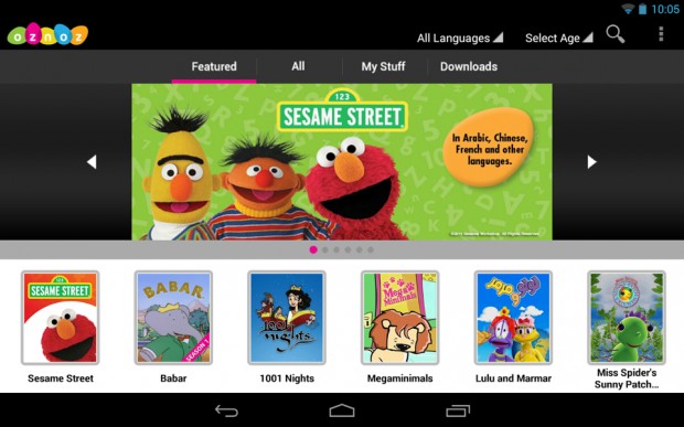 The Oznoz Video app features shows like Sesame Street, Elmo’s World, Thomas and Friends, Barney and 1001 Nights in languages such as Chinese, French, Spanish, Persian and Arabic.